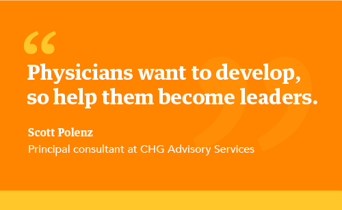 Studies show that restricted career growth and limited training opportunities lead to low job satisfaction. “Physicians want to develop, so help them become leaders,” Polenz says.