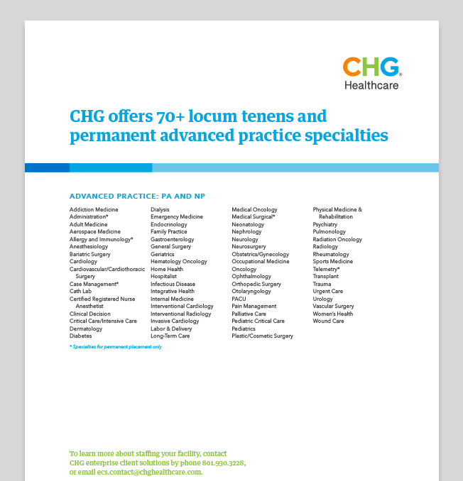 Get the details on how a career at CHG fast-tracks your success and lets you play a role in helping 25 million patients receive care each year.