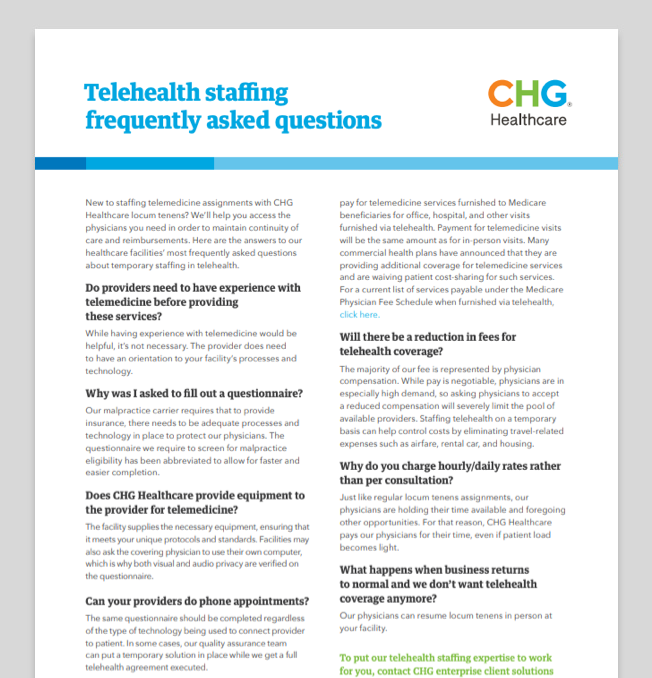 See how our experts draw from the industry’s largest locums database to deliver customized solutions such as locum tenens, permanent placement, and telehealth.